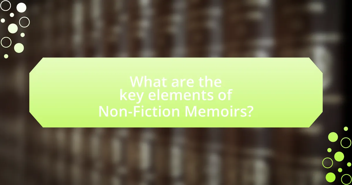 The key elements of non-fiction memoirs include personal narrative, factual accuracy, thematic depth, and emotional truth. Personal narrative allows the author to share their unique experiences, while factual accuracy ensures that the events and details presented are truthful and verifiable. Thematic depth provides insight into broader societal issues or personal growth, making the memoir relatable and meaningful. Emotional truth captures the genuine feelings and reflections of the author, allowing readers to connect on a deeper level. These elements collectively create a compelling and authentic representation of the author’s life and experiences.